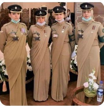 Uniform: You wear the Khaki Sari or Shalwar Kameez (Office Dress) and the Camouflage Combat Dress (CCD) during field duties.